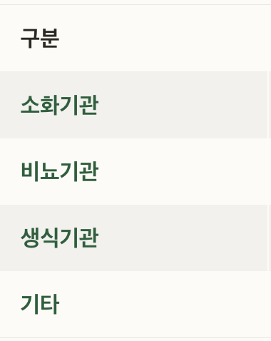 | 비뇨기관 | 요로결석, 요로감염 | 옆구리 통증, 배뇨 시 통증 |