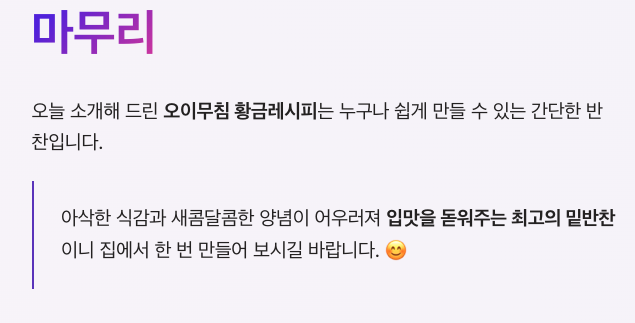 | 고춧가루 | 1큰술 | 매콤한 맛 |