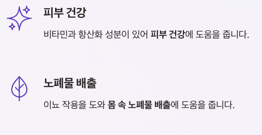 이뇨 작용을 도와 몸 속 노폐물 배출에 도움을 줍니다.