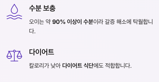 오이는 약 90% 이상이 수분이라 갈증 해소에 좋습니다.
