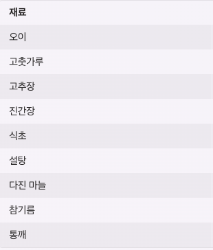 | 오이 | 1~2개 | 신선한 오이 |