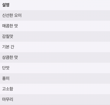 | 참기름 | 1작은술 | 고소함 |