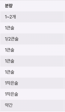 | 설탕 | 1큰술 | 단맛 |
