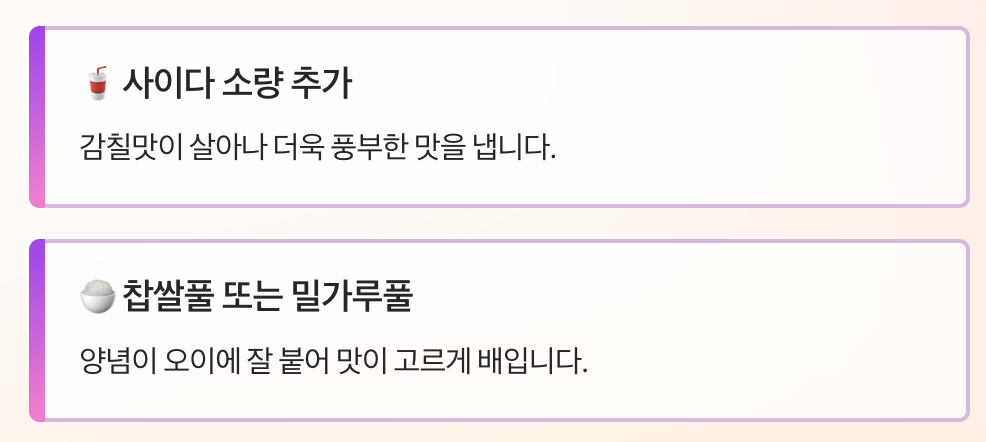- 사이다를 소량 넣으면 감칠맛이 살아납니다
