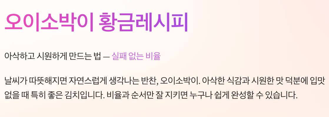 오이소박이 황금레시피 핵심 포인트