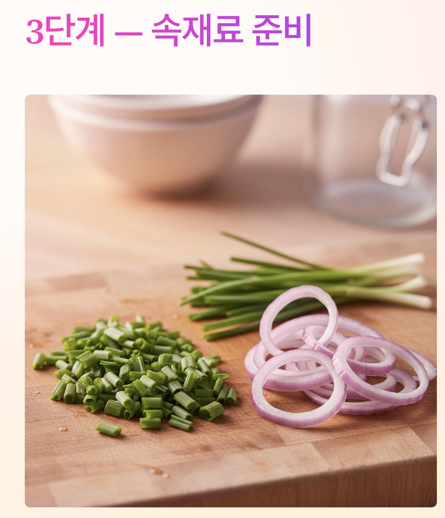 | 속재료 | 부추 1줌, 양파 1개 |
