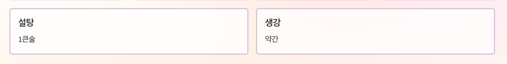 | 기타 | 설탕 1큰술, 생강 약간 |