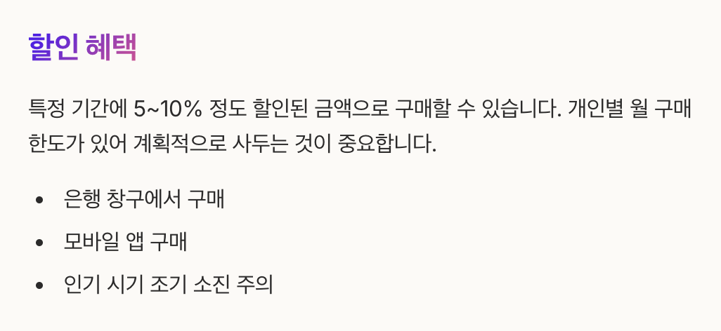 온누리상품권은 특정 기간에 할인 판매가 진행되는데, 보통 5~10% 정도 할인된 금액으로 구매할 수 있습니다. 다만 개인별 월 구매 한도가 있기 때문에 계획적으로 사두는 것이 중요합니다. 할인 판매는 은행 창구, 모바일 앱 등을 통해 이뤄지며, 인기 있는 시기에는 조기 소진되기도 합니다.