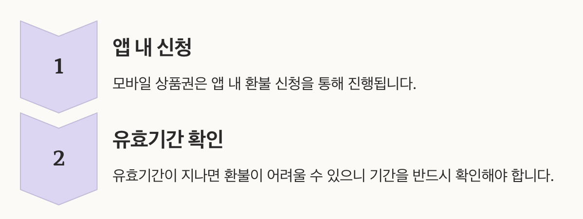 모바일 상품권은 앱 내 환불 신청을 통해 진행됩니다. 다만 유효기간이 지나면 환불이 어려울 수 있으니 기간을 반드시 확인해야 합니다. 또한 일부 금액만 남았을 때는 환불보다는 소액 결제에 활용하는 것이 효율적입니다.