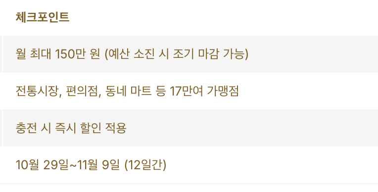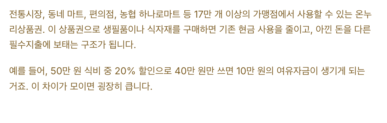 | 사용처 | 전통시장, 편의점, 동네 마트 등 17만여 가맹점 |