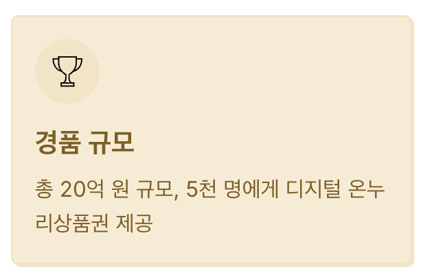 총 20억 원 규모로 5천 명에게 디지털 온누리상품권이 경품으로 제공됩니다.