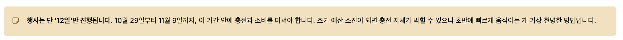 10월 29일부터 11월 9일까지, 이 기간 안에 충전과 소비를 마쳐야 하죠.