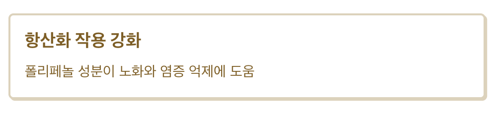 | 항산화 작용 강화 | 폴리페놀 성분이 노화와 염증 억제에 도움 |