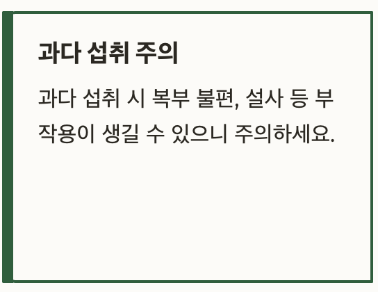 과다 섭취 시 복부 불편, 설사 등 부작용이 생길 수 있으니 주의하세요.