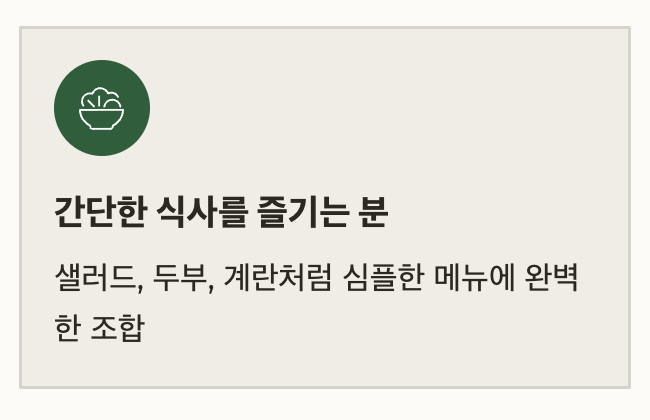 요리의 질도, 식단의 밀도도 자연스럽게 달라지는 경험.