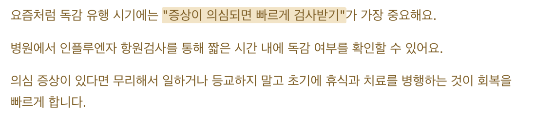 “증상이 의심되면 빠르게 검사받기”가 가장 중요해요.