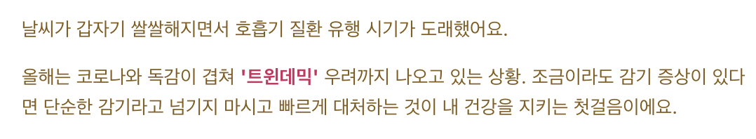 특히 최근 코로나와 독감이 동시에 유행하면서