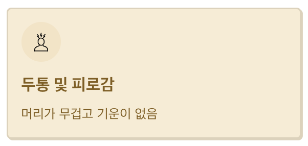 | 두통 및 피로감 | 머리가 무겁고 기운이 없음 |