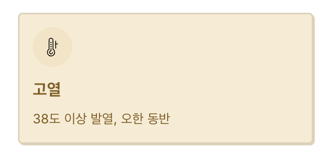 | 고열 | 38도 이상 발열, 오한 동반 |