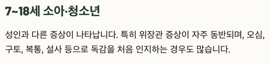 7세에서 18세 사이 소아·청소년에게는 성인과 다른 증상이 나타납니다.