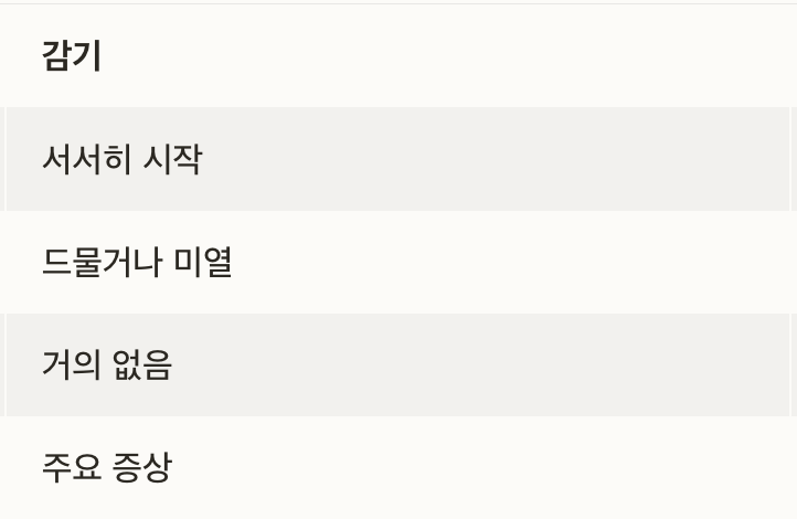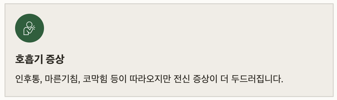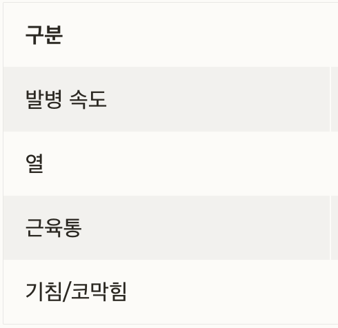 | 기침/코막힘 | 주요 증상 | 발열 후 나타나는 부증상 |
