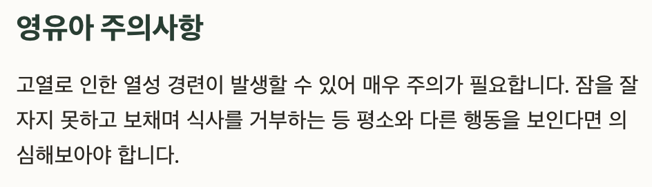 "고열로 인한 열성 경련"이 발생할 수 있어 매우 주의가 필요합니다.