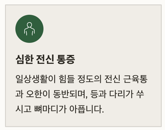 전신 통증이 심한 경우에는 반드시 병원 진료를 받는 것이 안전합니다.