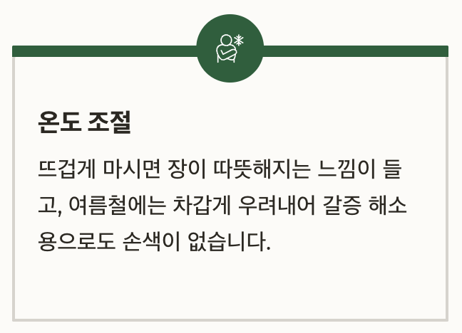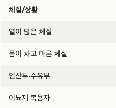 | 열이 많은 체질 | 하루 2~3잔 따뜻하게 마시기 | 특별한 주의사항 없음 |