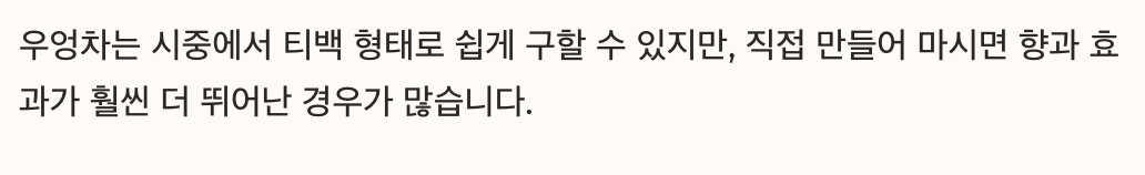 직접 만들어 마시면 향과 효과가 훨씬 더 뛰어난 경우가 많습니다.