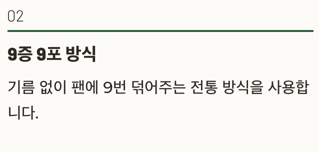 기름 없이 팬에 9번 덖어주는 방식(9증 9포)이 일반적인 전통 방식이에요.