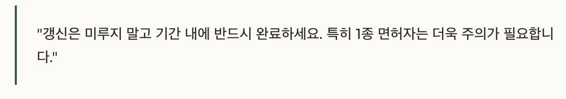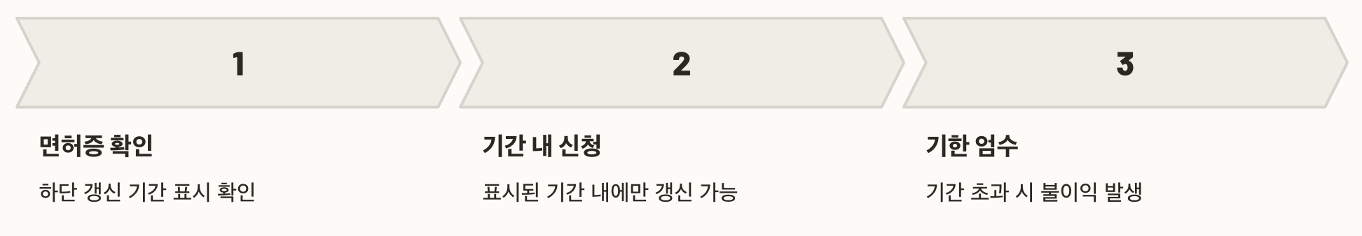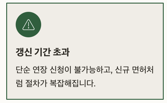 단순 연장 신청이 불가능하고, 신규 면허처럼 절차가 복잡해져요.