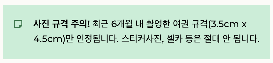 사진은 최근 6개월 내 촬영한 여권 규격(3.5cm x 4.5cm)만 인정되니
