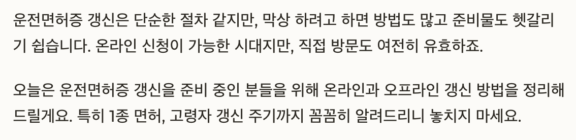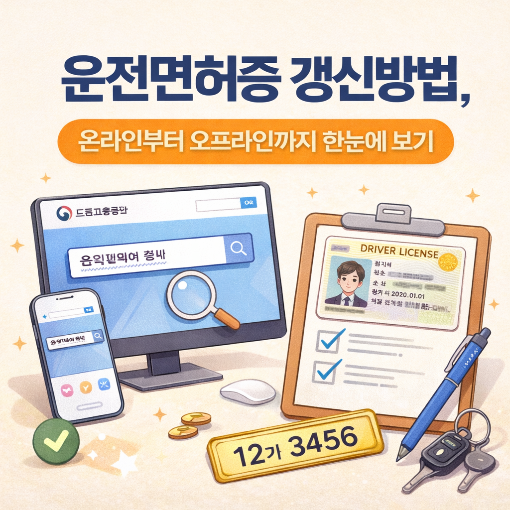 운전면허증 갱신은 단순한 절차 같지만, 막상 하려고 하면 방법도 많고 준비물도 헷갈리기 쉽습니다. 온라인 신청이 가능한 시대지만, 직접 방문도 여전히 유효하죠. 오늘은 운전면허증 갱신을 준비 중인 분들을 위해 온라인과 오프라인 갱신 방법을 정리해 드릴게요. 특히 1종 면허, 고령자 갱신 주기까지 꼼꼼히 알려드리니 놓치지 마세요.