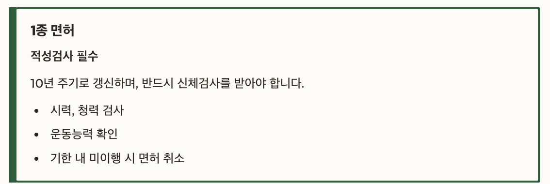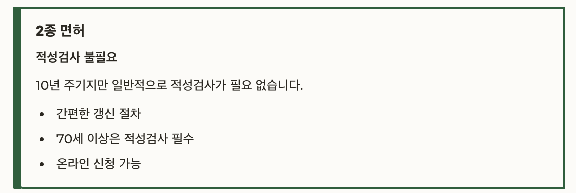 • 2종: 10년 주기지만 적성검사 불필요 (70세 이상은 필수)