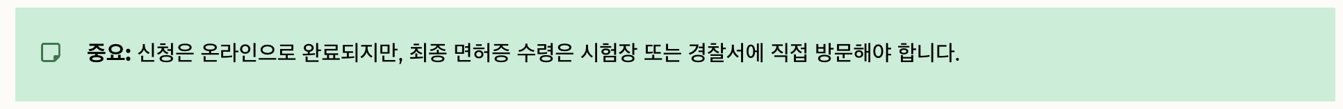 신청은 온라인으로 완료되지만, 최종 면허증 수령은