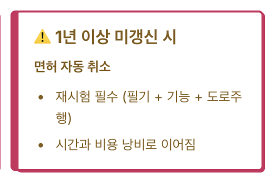 • 1년 이상 미갱신 시, 면허 자동 취소