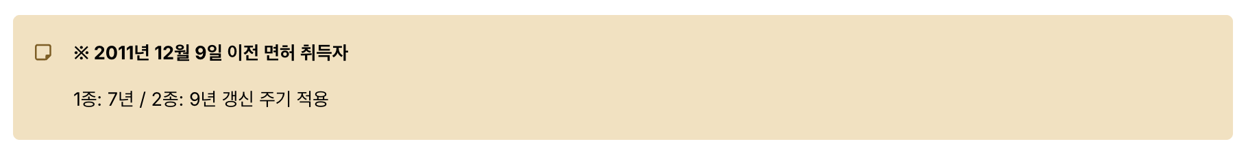 1종: 7년 / 2종: 9년 갱신 주기 적용