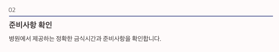 검사 전 정확한 금식시간과 준비사항은 검진 병원에서도 안내받을 수 있습니다.
