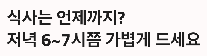 식사는 언제까지? 저녁 6~7시쯤 가볍게 드세요