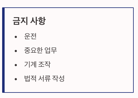 | 수면 내시경 후 | 운전, 기계조작 금지 |