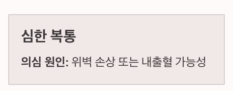 | 심한 복통 | 위벽 손상 또는 내출혈 가능성 |