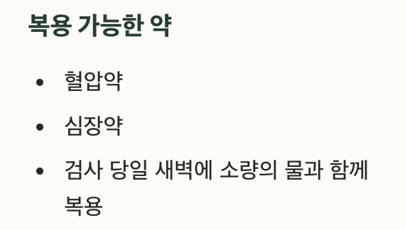 물은 마셔도 되나요? 검사 2시간 전까지만 OK