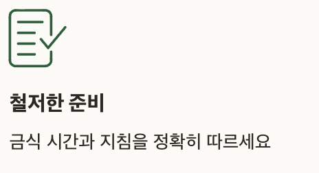 검사 당일에는 "맑은 물만 허용"된다고 기억해두세요.