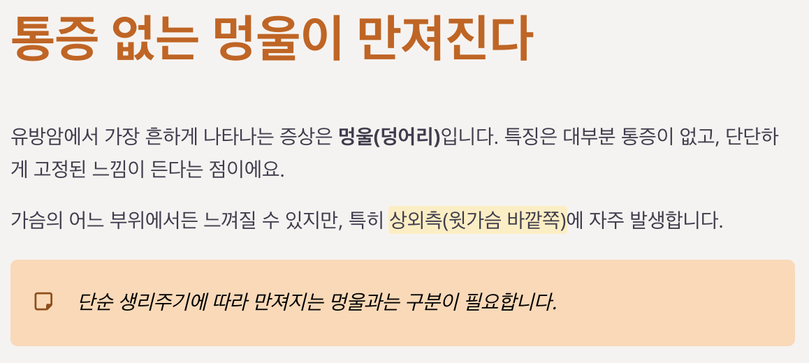 단순 생리주기에 따라 만져지는 멍울과는 구분이 필요합니다.