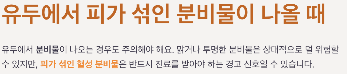 2. 유두에서 피가 섞인 분비물이 나올 때