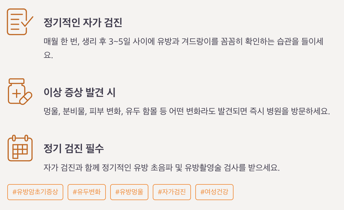 가장 중요한 건 정기적인 자가 검진과 조기 발견이에요.