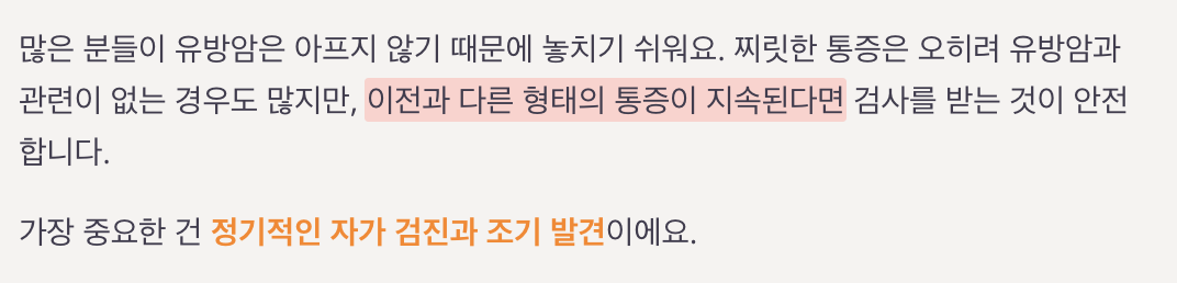찌릿한 통증은 오히려 유방암과 관련이 없는 경우도 많지만,