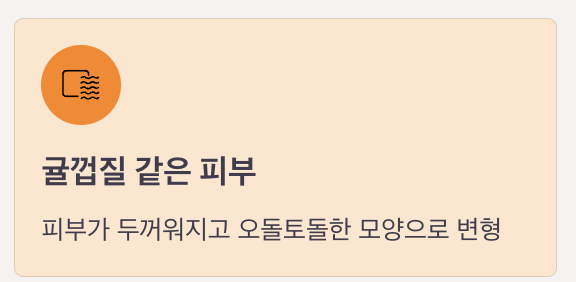 – 피부가 두꺼워지고 귤껍질처럼 오돌토돌한 모양으로 변형