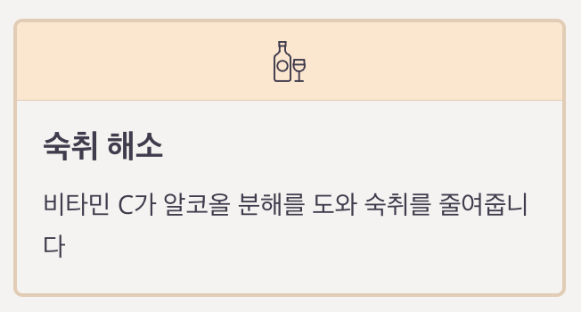 | 비타민 C | 감기 예방, 피부 개선, 숙취 해소 |
