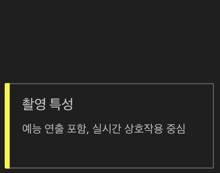 예능 특성상 연출이 포함되지만 실시간 상호작용 중심입니다.